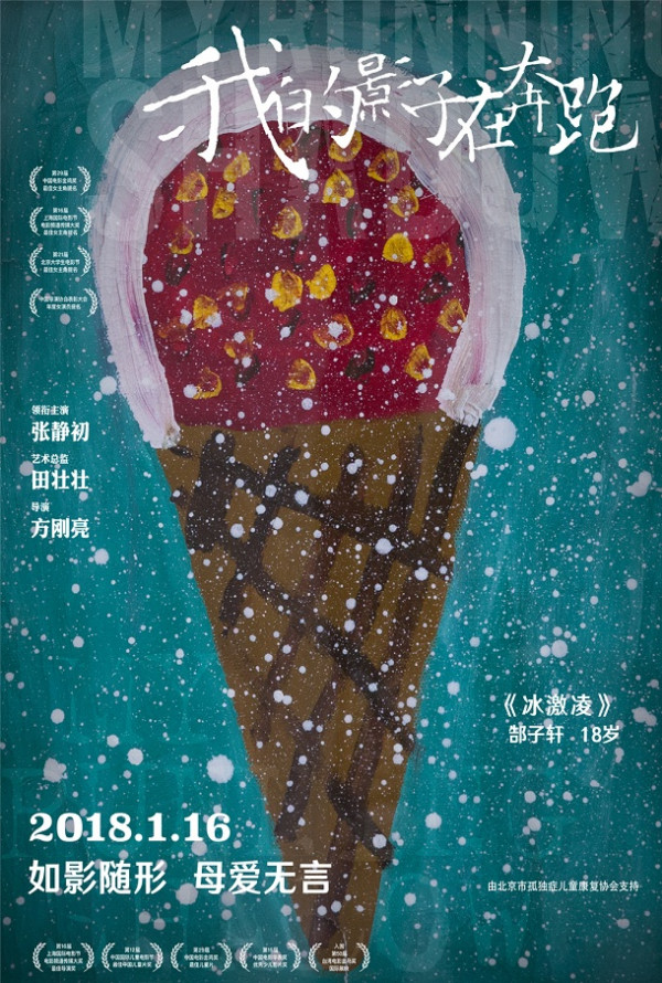 《我的影子在奔跑》讲述了身患自闭症的修直在妈妈田桂芳的精心呵护下健康成长的故事。影片原定于2013年上映,后来由于宣传费用难筹、和原发行公司解约等等原因沉默了5年。五年里,该片29次入围全球各类电影节、电影展各类奖项提名,并8次获奖,电影对自闭症与母爱的描述感动了很多人,对艾斯伯格综合征的关注也得到了社会多方面的认可。