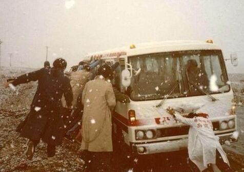 杨洁带队去黄山采景时,管理处派来一辆破旧的面包车接送,车窗和车灯都是坏的。他们只好在路边的供销社买了两个手电筒,拿来“假冒车灯”,才敢在山路里继续前行。雪飘进车里,风不停吹拂,他们冻得瑟瑟发抖。