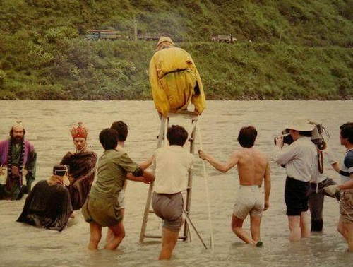 那时的特效技术很渣,能不用特效的绝不用,所以拍河里的打戏时,演员们真的浸泡在湍急的河流里。