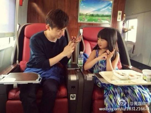 而作为黄老师的多年好友+搭档,何炅也一直陪伴着多多成长,几人一直跟随“暗恋桃花源”剧组到各地演出,结下了深厚的情谊,何老师也成为多多当之无愧的良师和“干爸爸”。