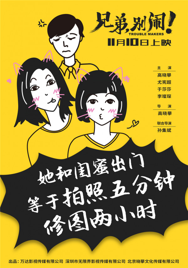 由嘻哈包袱铺掌门高晓攀自导自演,孙集斌联合导演,尤宪超、于莎莎、李璨琛等联袂主演的喜剧电影《兄弟别闹》今日发布了一组“男女神吐槽”话题海报,该组海报以男女对兄弟和闺蜜之间关系的相互解读为主题,将手绘漫画电影人物与神吐槽相结合,以犀利的年轻视角诠释别样趣味的兄弟与闺蜜情。海报引发了网友的热烈反响,“在他和他兄弟面前,我觉得我是小三”等直击人心的吐槽引起深刻共鸣,更有人点赞称“男女大不同,但义气相投!”影片围绕兄弟关系,并以独特视角展现对兄弟与女性关系的思考,不仅令男性观众期待十足,也引发女性观众的关注。影片将于11月10日全国公映。