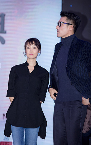 柯蓝发布会现场柯蓝亮相《猎场》发布会柯蓝饰葵黄柯蓝现场照片柯蓝与胡兵合影柯蓝与胡兵现场互动