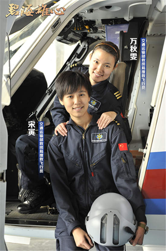 石安妮饰演的孔令雯是一位富家女,由于海上遇难与救援队结缘,并因此改变自我成为一名合格的救援机飞行员。这个人物的原型是万秋雯、宋寅这对姐妹花,不过,二人并没有显赫的家庭出身,从跨出校门起便在从事救助飞行职业,如今已经过十年的历练,为我国唯一两名女救助机长。