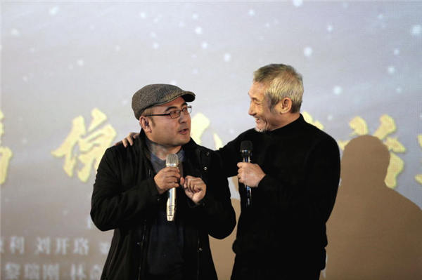 在片中饰演诸葛青云的大鹏昨晚“躲”在观众席里观影,观影结束后他的现身也获得了现场观众的掌声支持。大鹏笑着表示,非常感谢徐克袁和平两位导演为他安排了如此“丰富”的感情戏:“这大概是我演艺生涯的巅峰。”再度引起众人爆笑。
