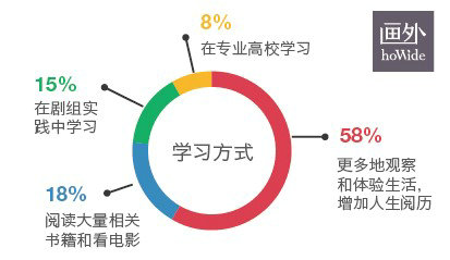 但是,这一群“高知”导演们,当被问到“认为电影导演最重要的学习方式是什么”的问题时,只有8%的受访者认为“在专业高校中学习”最为重要,而58%的受访者认为“更多观察和体验生活,增加人生阅历”才是成为导演的关键。在他们看来,学历虽然必要,但对生活的观察和感悟才是电影导演们最重要的课程。
