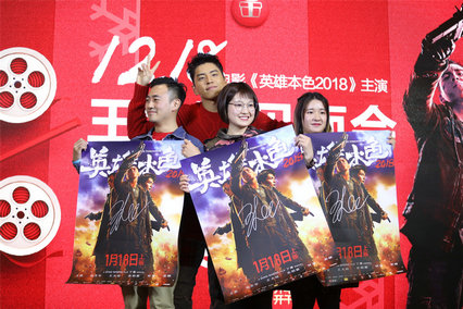 王大陆给粉丝送礼物由丁晟执导,王凯、马天宇、王大陆、余皑磊、林雪、吴樾主演的电影《英雄本色2018》将于2018年1月18日全国公映。12月18日,影片首站路演率先开跑,点燃深圳,成为2018年首部开
