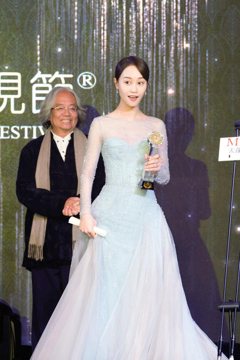 蓝盈莹澳门国际电影节颁奖现场蓝盈莹穿淡蓝色梦幻薄纱裙蓝盈莹低头浅笑蓝盈莹发表获奖感言蓝盈莹手握奖杯蓝盈莹《外科风云》饰演护士杨羽