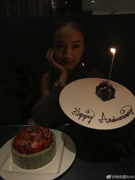 12月24日是林依晨结婚三周年纪念日,她通过微博晒出与老公外出吃烛光晚餐的照片,并写道:“ happy anniversary!!!”照片中,林依晨扎着高高的马尾,手托下巴,对镜甜笑,在烛光的映衬下显得格外的迷人漂亮, 桌上放有美味诱人的蛋糕,气氛非常的浪漫温馨。