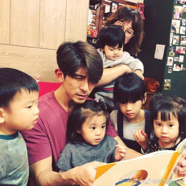 照片中修杰楷怀中抱着女儿咘咘,身边还围了4个孩子,大家聚精会神地在听修叔叔讲故事,个个神情专注认真。粉丝调侃:“你现在都不只是超级奶爸了,你简直就是个孩子王!”