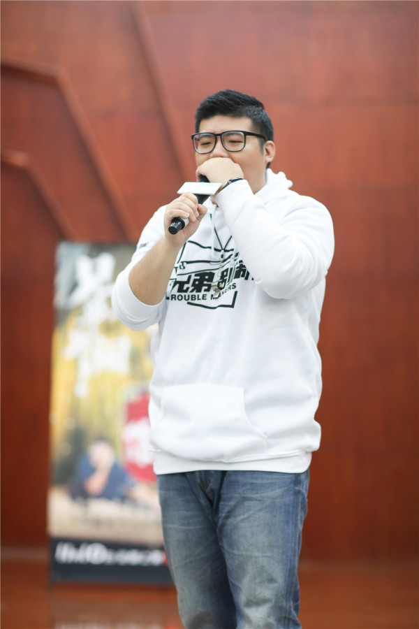 在路演第二站的郑州,高晓攀、尤宪超放肆搞笑继续为《兄弟别闹》“笑果”加料。在郑州财经大学、河南大学的校园见面会中,两人使出“十八般技艺”high翻全场。高晓攀路演献唱暖心歌曲,现场同学纷纷挥舞手机随歌声摇摆,见面会秒变演唱会。尤宪超自告奋勇表演B-box,本以为会带来一段低音浑厚、节奏逼真的表演,没想到他只是“偷工减料”地动动嘴皮毫无B-box效果,惹来全场爆笑。此外,活动现场播放了《兄弟别闹》的花絮片段,引得现场笑声连连,观众对电影更加期待。还有同学迫不及待喊话高晓攀,“电影能不能早点上映!”