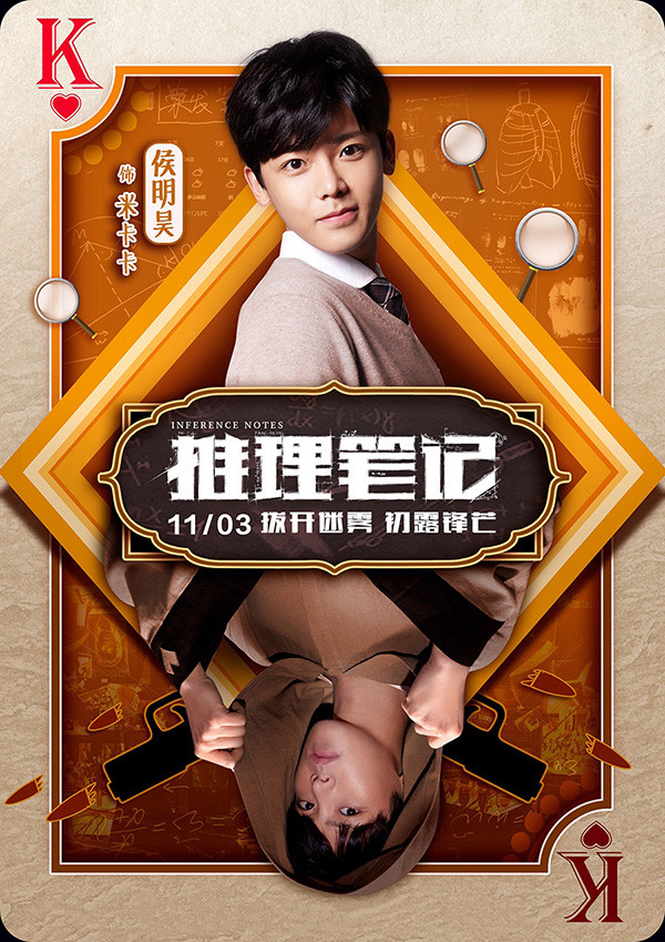 侯明昊《推理笔记》海报侯明昊回眸似有深意侯明昊神情严肃直视前方侯明昊饰演米卡卡侯明昊眼神带戏