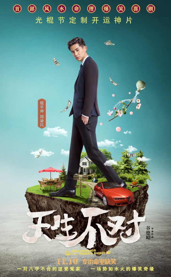 “神算冤家”竖版由谷德昭执导,周渝民、薛凯琪、郑中基主演的国内首部风水命理爆笑爱情喜剧《天生不对》即将于11月10日登陆全国院线。今日,该片曝光了一款“天生好运研究所”特辑,特