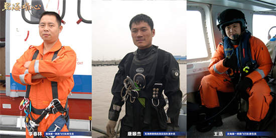 《碧海雄心》救捞队角色演员:江宁波、李珉成、谢源、孙大鹏《碧海雄心》救捞队角色演员:徐成林、吕颂贤、任泽巍《碧海雄心》中国救捞人人物原型:机长郭正伟、潘伟《碧海雄心》中国救捞人人物原型:潜水员王海杰与演员于小彤、江宁波《碧海雄心》中国救捞人人物原型1:救生员李春林、王浩,潜水员唐顺杰《碧海雄心》中国救捞人人物原型3:打捞专家钟松民《碧海雄心》中国救捞人人物原型4:飞行员宋寅、万秋雯