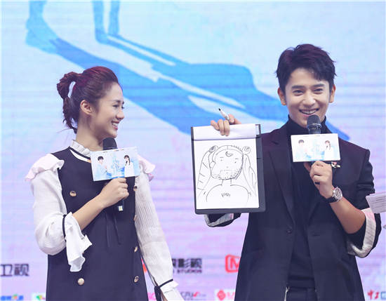 发布会现场,陈若轩和安悦溪玩起了”你画我猜“小游戏,戏里的天才画手顾学长秒变灵魂画手,把安悦溪画成了满脸胡茬的美少女战士,惹得安悦溪怒嗔“这明明是包拯”。虽然台上上演了一出霸道学长欺负软萌少女的戏码,两个人却表示,戏里面是相反的,安悦溪欺负陈若轩才是白露cp的日常。