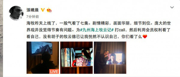巨制IP《海上牧云记》昨晚正式登陆全网首播,恢弘新奇的世界观体系、场景宏大收获一众网友的点赞。 张晓晨饰演的九州最壕世子牧云德也因造型俊美成剧中新亮点,在网上引起热议。张晓晨本人也在微博晒出蓄须对比照,称慌神一秒差点没认出没胡子的自己!