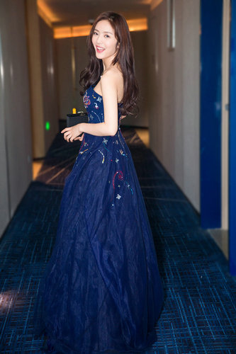 蔡文静身披绚烂星空裙精致女孩梦幻十足